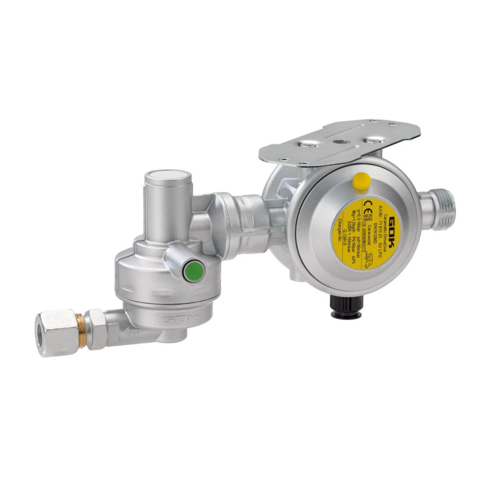 Bestehend aus: automatischem Umschaltventil, Niederdruckregler mit Sicherheitsabblaseventil PRV, mechanischem Crash-Sensor, Bedienknopf, Betriebs- und Reserveanzeige, Gasrücktrittsicherung, Prüfeinrichtung und Wandhalterung. Anschluss: AG M20 x 1,5 x RVS