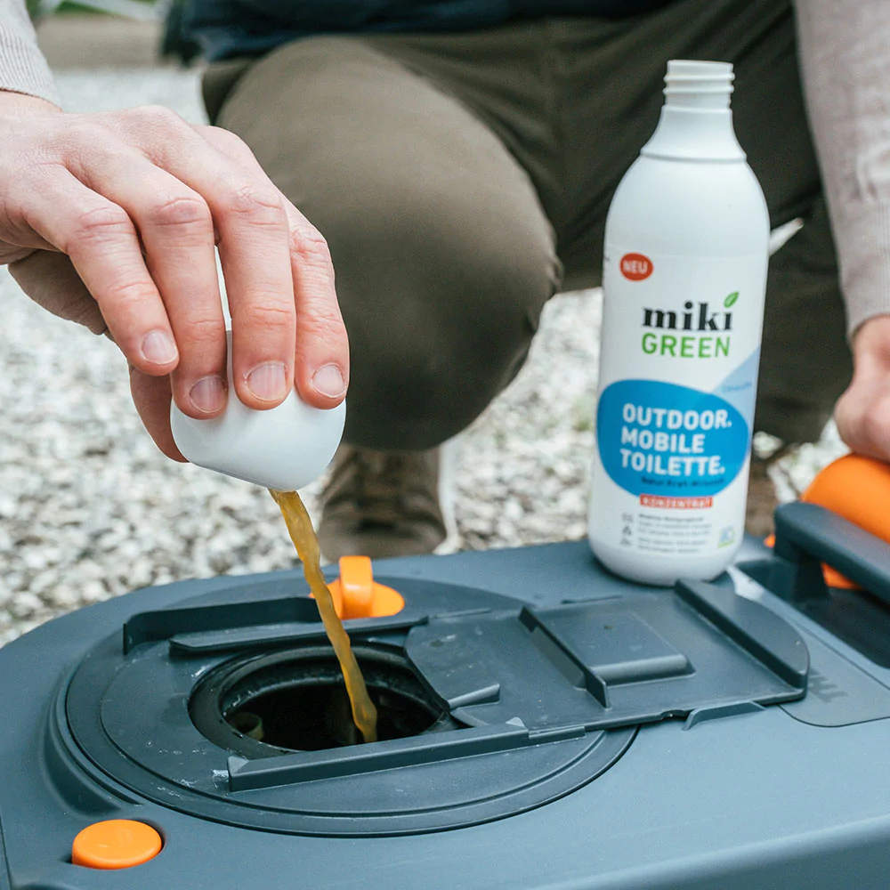 Mit mikiGREEN sind Sie nachhaltig unterwegs. Ganz ohne Chemie verflüssigt dieser Sanitärzusatz Fäkalien, entfernt Ablagerungen und neutralisiert unangenehme Gerüche. So werden Mobiltoiletten, grauwasserführende Tanks und Rohrsysteme in Wohnmobil, Hütte und Boot zuverlässig sauber und gepflegt. Durch seine rein natürliche, mikrobiologische Formel schont der Zusatz Gewässer und ist auch für Bio-Kläranlagen optimal geeignet.
