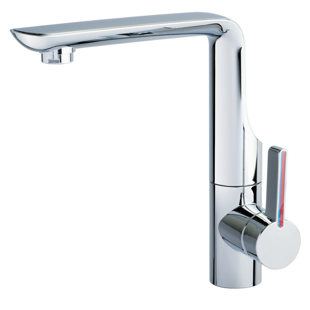 Moderne Kunststoffarmatur. Die hohe Funktionalität unterstreichen der schwenkbare Auslauf (360 Grad), die eingesetzte, bewährte Keramikkartusche, sowie der ausschraubbare Wasserauslass. Standardmäßig mit Reinigungsschlüssel zum Entkalken und Reinigen. Gut zu reinigende Oberfläche.