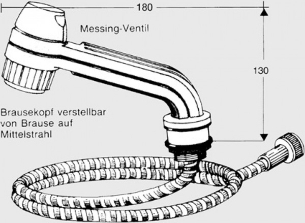 Carlettamat Handdusche mit integriertem Messing-Ventil, 1,5 m hochwertigen Brauseschlauch sowie als Halterung eine Tischrosette mit Mutter, Dichtung und Distanzhülse. Dadurch ist eine Mengenregulierung sowie eine Umschaltung von Duschen auf Strahl möglich.