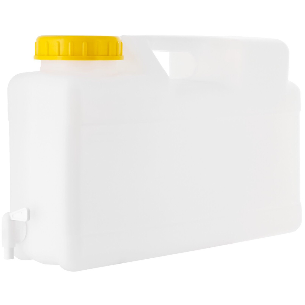 Extra flacher Kanister mit zwei Öffnungen (DIN 96/61) aus Trinkwasser zugelassenem Polyethylen.