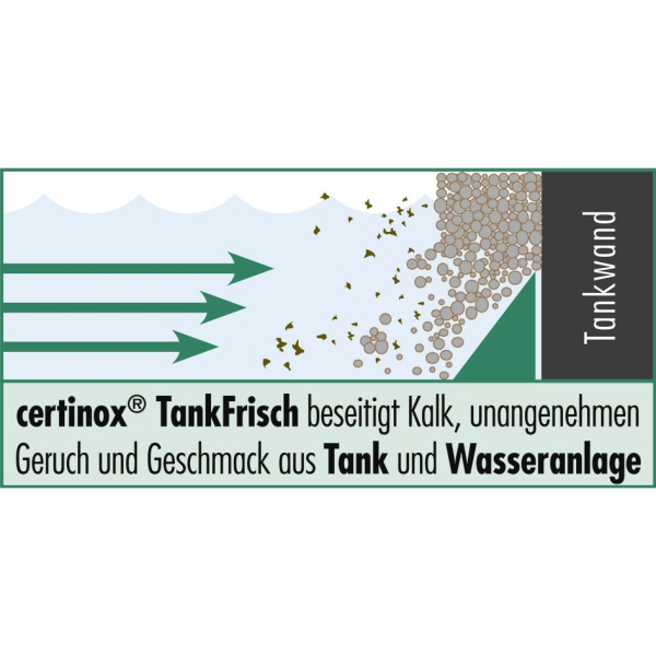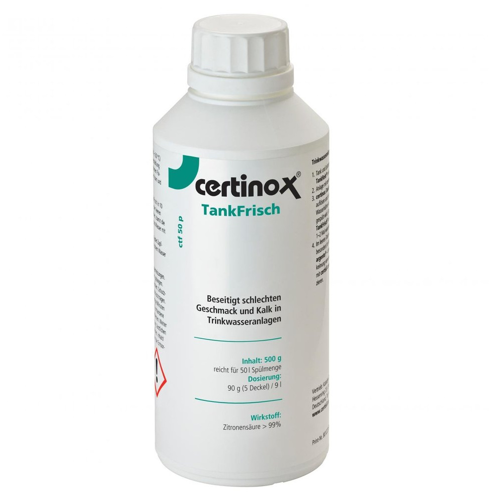 certinox-TankFrisch: beseitigt mit natürlicher Zitronensäure muffigen Geruch, schlechten Geschmack und Kalk in Wassertanks, Leitungen und Pumpen. Silberionen schützen vor Wiederverkeimung.