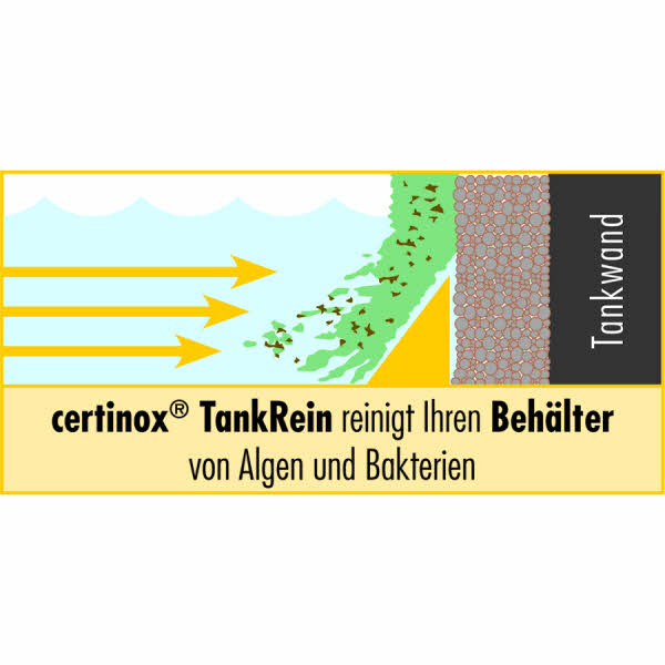 Certinox Tankrein löst mit Aktivsauerstoff Algen- und Baketerienbeläge an den Innenwänden von Tank, Leitungen und Pumpen - ohne Chlor und Tenside.