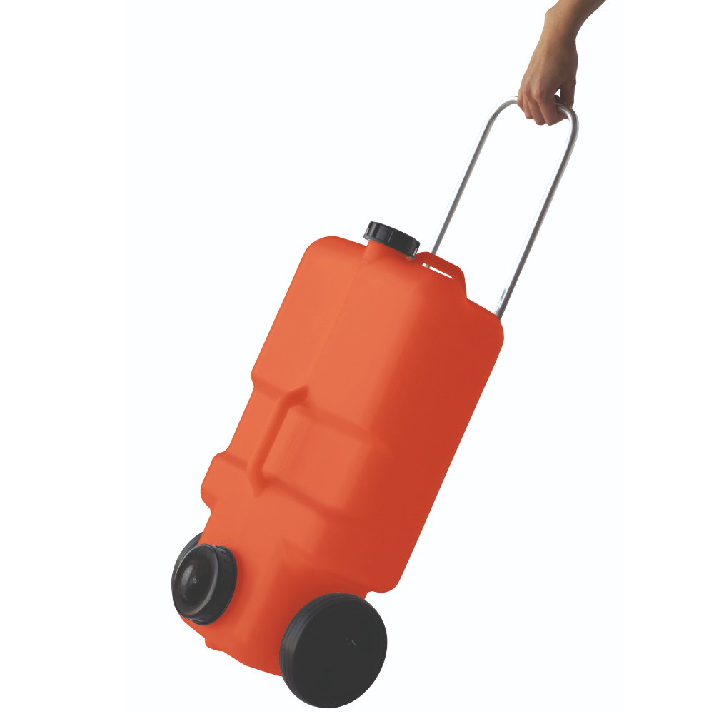 Geeignet für den bequemen Transport von Frisch- bzw. Abwasser. Mit 2 Verschraubungen für DIN61/NW96 Anschlüsse. Passend für alle Zubehörteile (z. B. Befüllschlauch, Hahnverschluss) mit 61er Gewinde. Mit ausziehbarem Zugbügel und großen, sehr stabilen Kunststoffrädern. Aus stabilem HDPE Polyethylen.