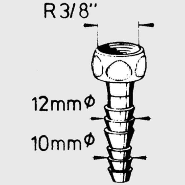 für Schläuche von 10 + 12 mm Durchmesser, mit Überwurfmutter; 3/8 Zoll und Dichtscheibe, für Auslaufhähne