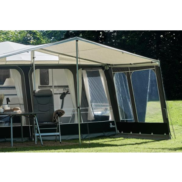 Auf Wunsch vieler Penta-Besitzer hat die Firma Isabella das optimale Sonnendach für das fünfeckige Vorzelt entwickelt. Die Basis für das Sonnendach bildet das Mega-Gestänge. Dadurch ist es besonders stabil und für Saisoncamper ausgezeichnet geeignet.