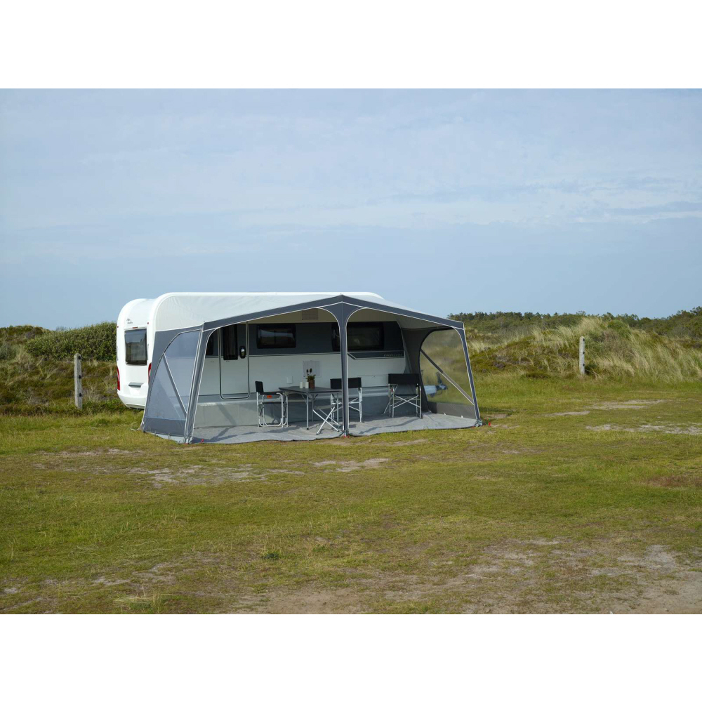 Wer etwas mehr Schutz möchte, kann die Sun Shine Plus Front hinzunehmen. Die Front besteht aus 2 Teilen und wird einfach per Reißverschluss eingesetzt. In jeder Hälfte bedindet sich eine Eingangstür. Selbstverständlich kann auch nur eine Fronthälfte eingesetzt werden, um für Wind- und Wetterschutz zu sorgen. Alles kann raus, alles kann rein. Das ist Flexibilität pur.