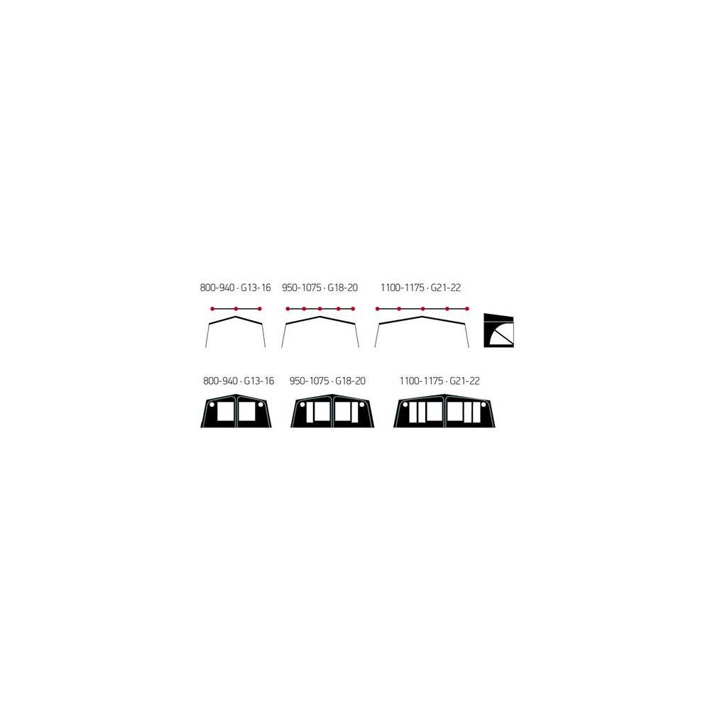 Details: Hohlsäume für Giebelstangen (mehr Stabilität), Seitenteile abklapp- und herausnehmbar mittels Rundbogenreißverschluss. Dachunterseite hell bedruckt.