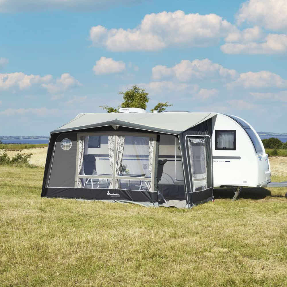 Ein teilweise in die Kederschiene eingezogenes Vorzelt ist normalerweise nur mit dem Wohnwagendach verbunden. Mit Polster und Andruckstangen werden die Seitenteile an die Wohnwagen-Seitenwand gepresst, sodass eine gute seitliche Abdichtung möglich ist. Teilzelte eignen sich aufgrund des schnellen Aufbaus perfekt für Kurzurlaube. Auch für Wintercamping sind Winter-Teilzelte dank der geringen Zelttiefe und der steileren Dachschräge ideal geeignet, denn so kann der Schnee bei tauendem Wetter einfach hinabgleiten.