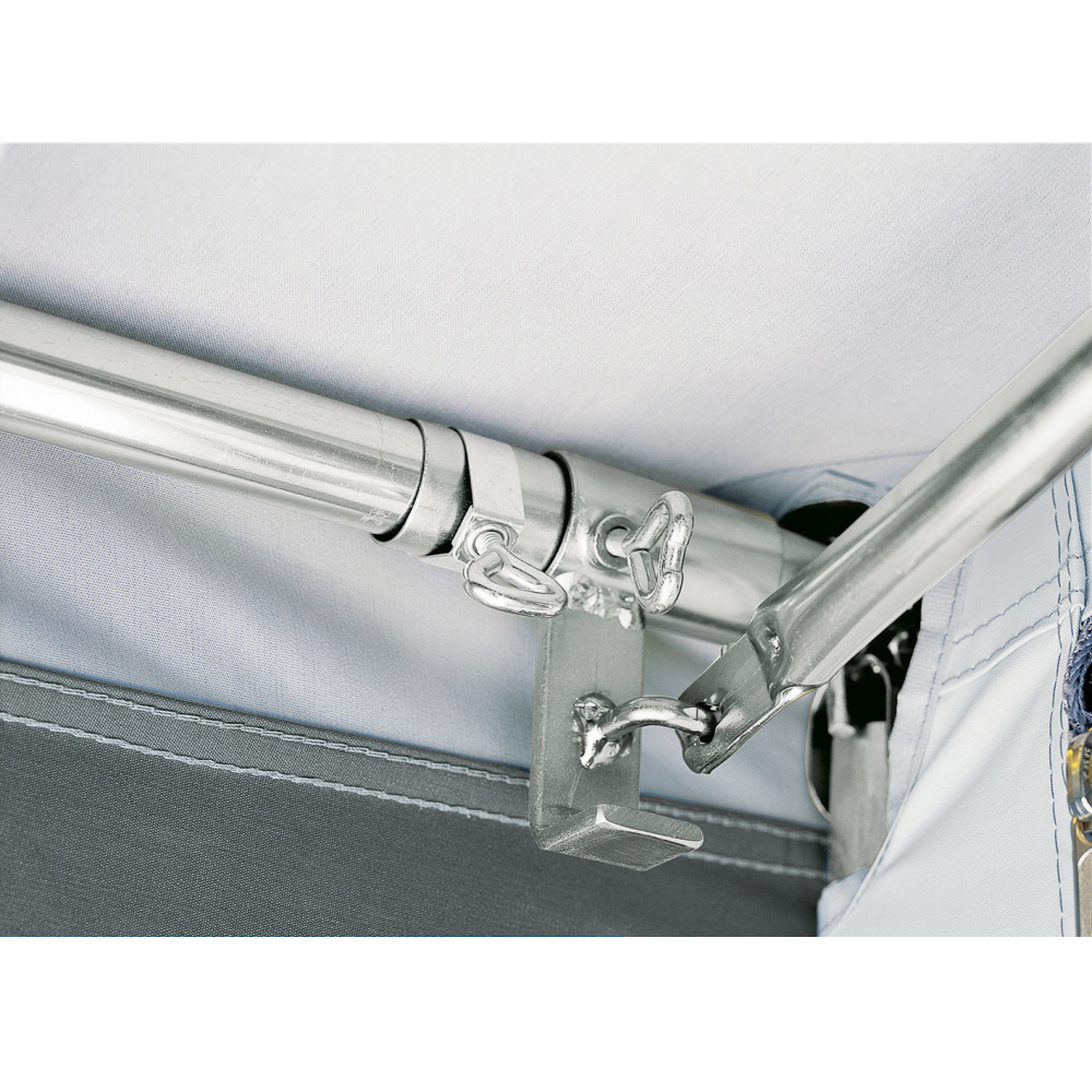 Gestänge: Stahl Durchmesser 22 x 1 mm (1 Dachstange, 3 Aufstellstangen, 3 Spezialadapter und 2 Giebelstangen)