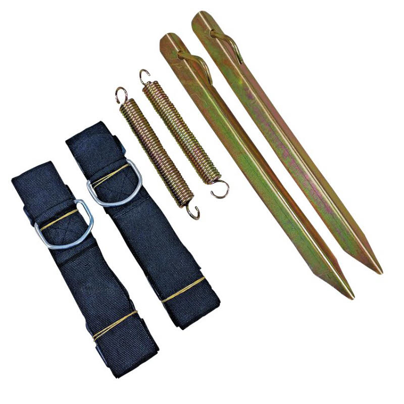 Lieferumfang: Zelt mit 6 bereits montierten Sturmclips (Sturmgurte optional erhältlich), Abspannmaterial, Gestänge, Gardinen mit Rollenaufhängung.