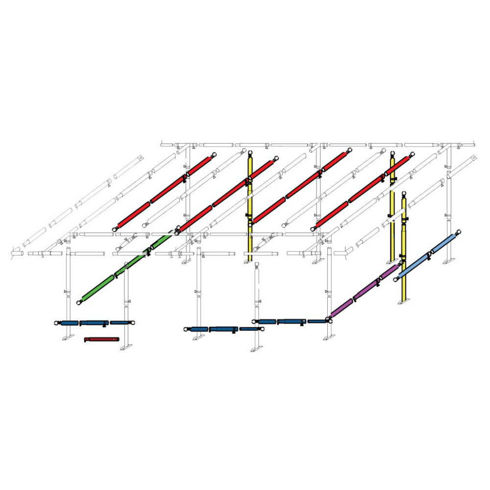 Gestänge: Durchmesser 32 mm Stahlgestänge (5 Dachstangen, 8 senkrechte Stangen, Vordachgestänge).