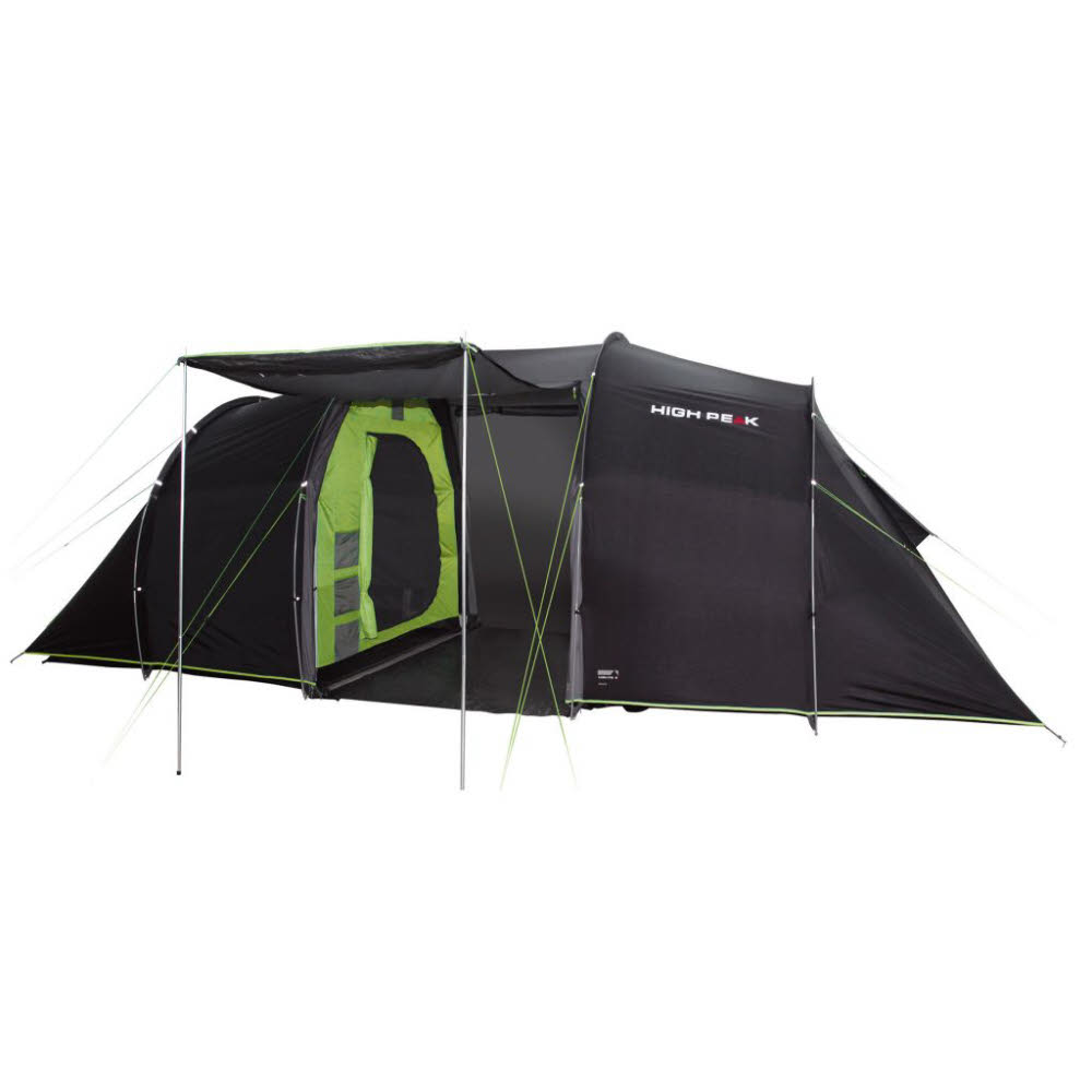 Der Wohnraum hat Lichtquellenfenster und einen pflegeleichten Zeltboden. Der Eingang kann als Sonnendach aufgestellt werden. Die gegenüberliegenden High Peak Vario Ventilationen belüften das Zelt auch bei regnerischem Wetter und sollten immer geöffnet sein. Die Reißverschlussabdeckung ist mit einer zusätzlichen Regenrinne ausgestattet. Das Innenzelt ist abnehmbar und bleibt somit beim Aufbau im Regen trocken.