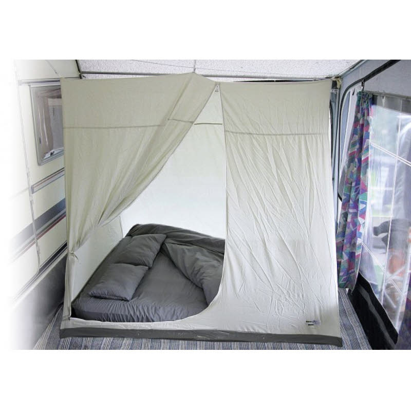 Mit dieser komfortablen Schlafkabine können Sie jetzt ungestört schlafen; sie wird einfach in das vorhandene Vorzeltgestänge eingehängt.