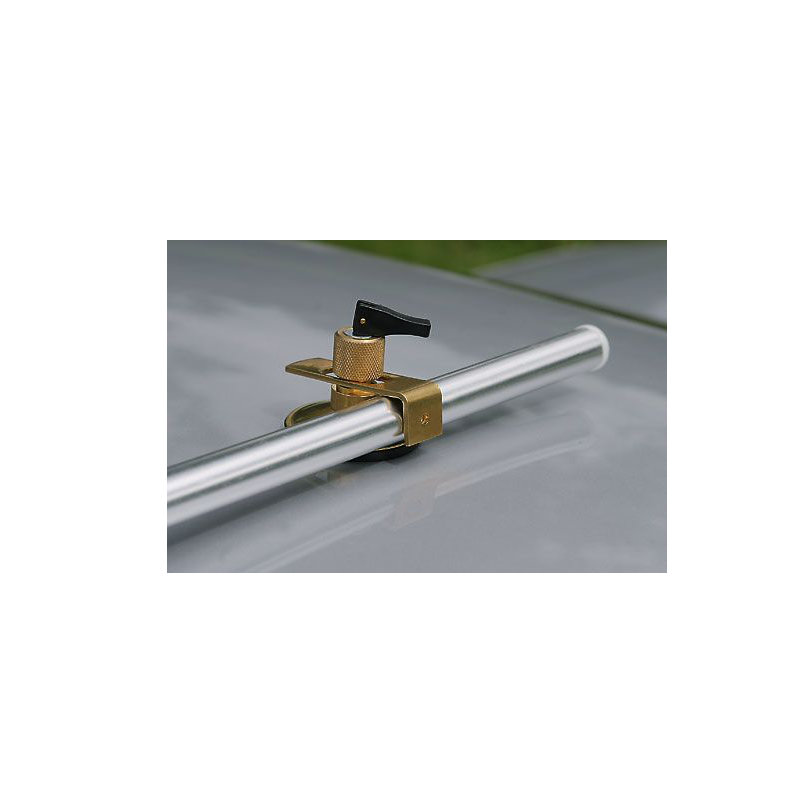 Zur Befestigung des Schleusenstabes auch ohne Regenrinne oder Kederschiene: Schleusenstab einfach in den Klappsauger klemmen und diesen auf dem trockenen, sauberen Fahrzeugdach befestigen.